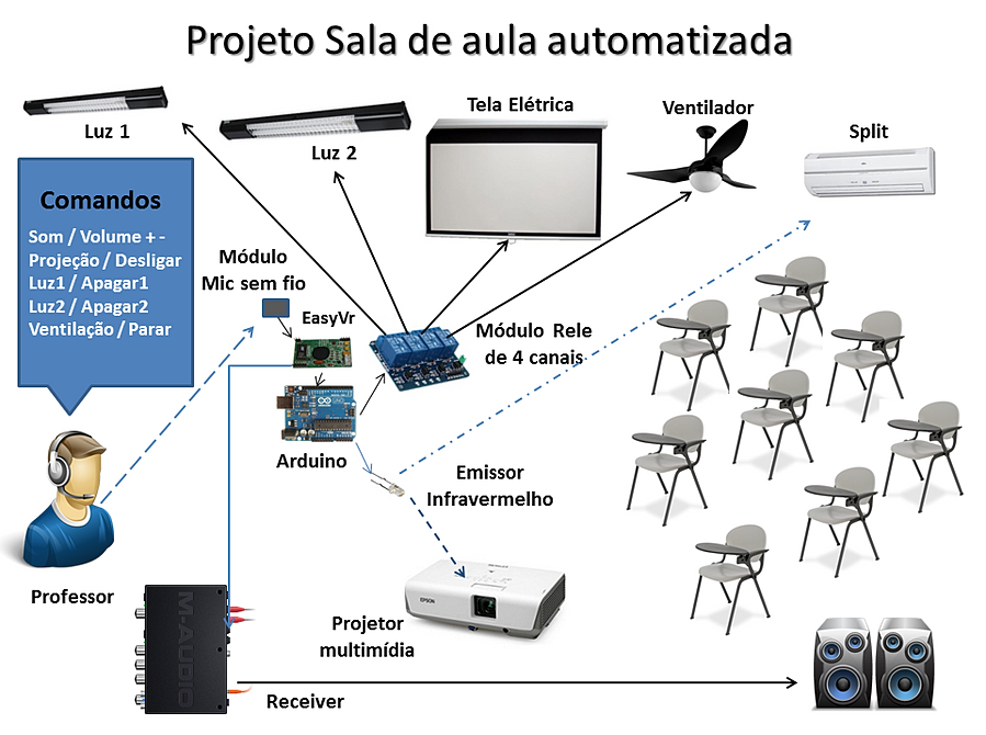 Jorge Silveira e Nelson Olaya foram uns dos meus colegas de sala na faculdade Anhanguera e fomos a segunda turma a se formar em Ciência da Computação, ele traz para nós uma esplêndida ideia de automação residencial utilizando o Arduino e aplicando reconhecimento de voz e também a sala de aula inteligente.